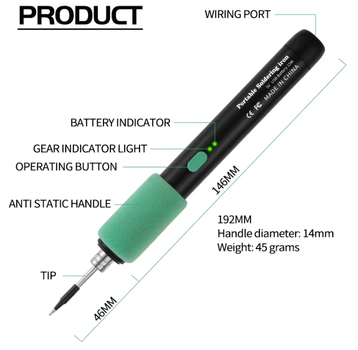 High Power:15W soldering iron for efficient and quick soldering