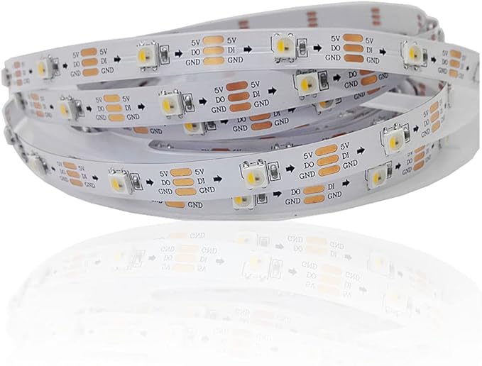 This LED strip comes in 1-meter length with 30 SK6812/WS2812B 5050 LED. SK6812 or WS2812B or Neopixel is an addressable RGB LED, controllable from many microcontrollers including Arduino, Teensy, Raspberry Pi, ESP8266, ESP32, and many more. And best of all, the control of all these LEDs uses ONLY ONE digital output pin from the controller.