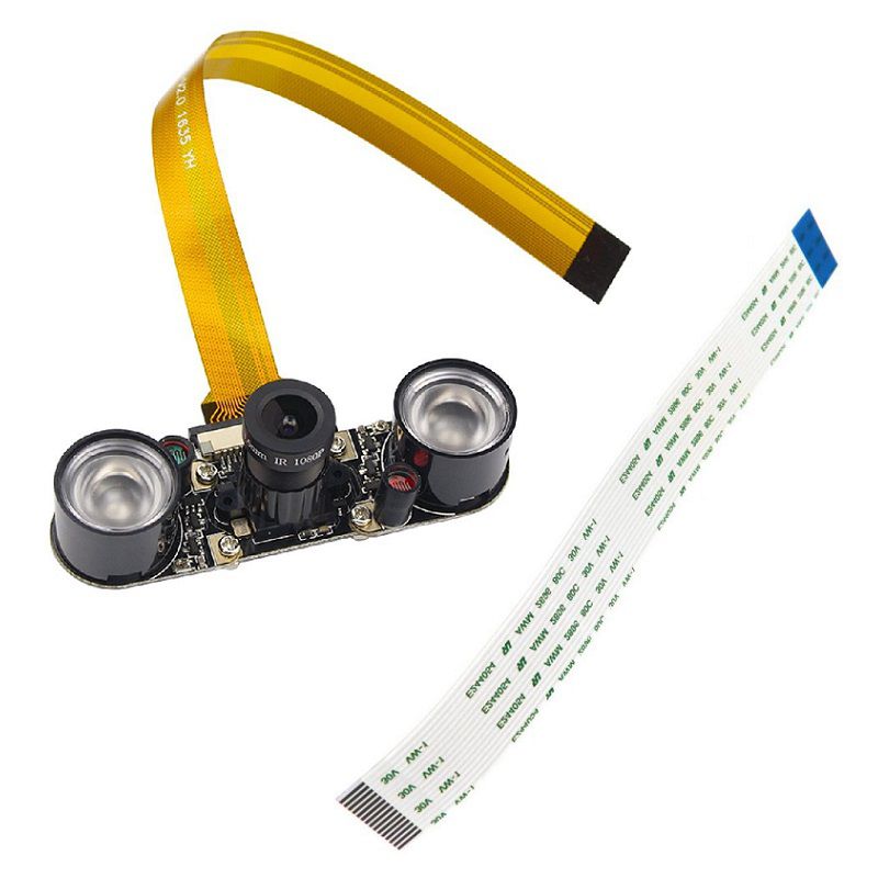 This 5MP Night Vision Camera for Raspberry Pi is compatible with every version of Raspberry Pi, even the Raspberry Pi Zero. It comes with two types of flex cable. The camera module comes with infrared lighting. It has infrared night vision mode, and the focus ring can be adjusted according to the position of objects. With external 1W high power 850nm infrared photographic lights, it can perform very well even in dim environments. Photoresistors and adjustable resistance could detect ambient light intensity and adjust the threshold of the infrared light switch automatically.