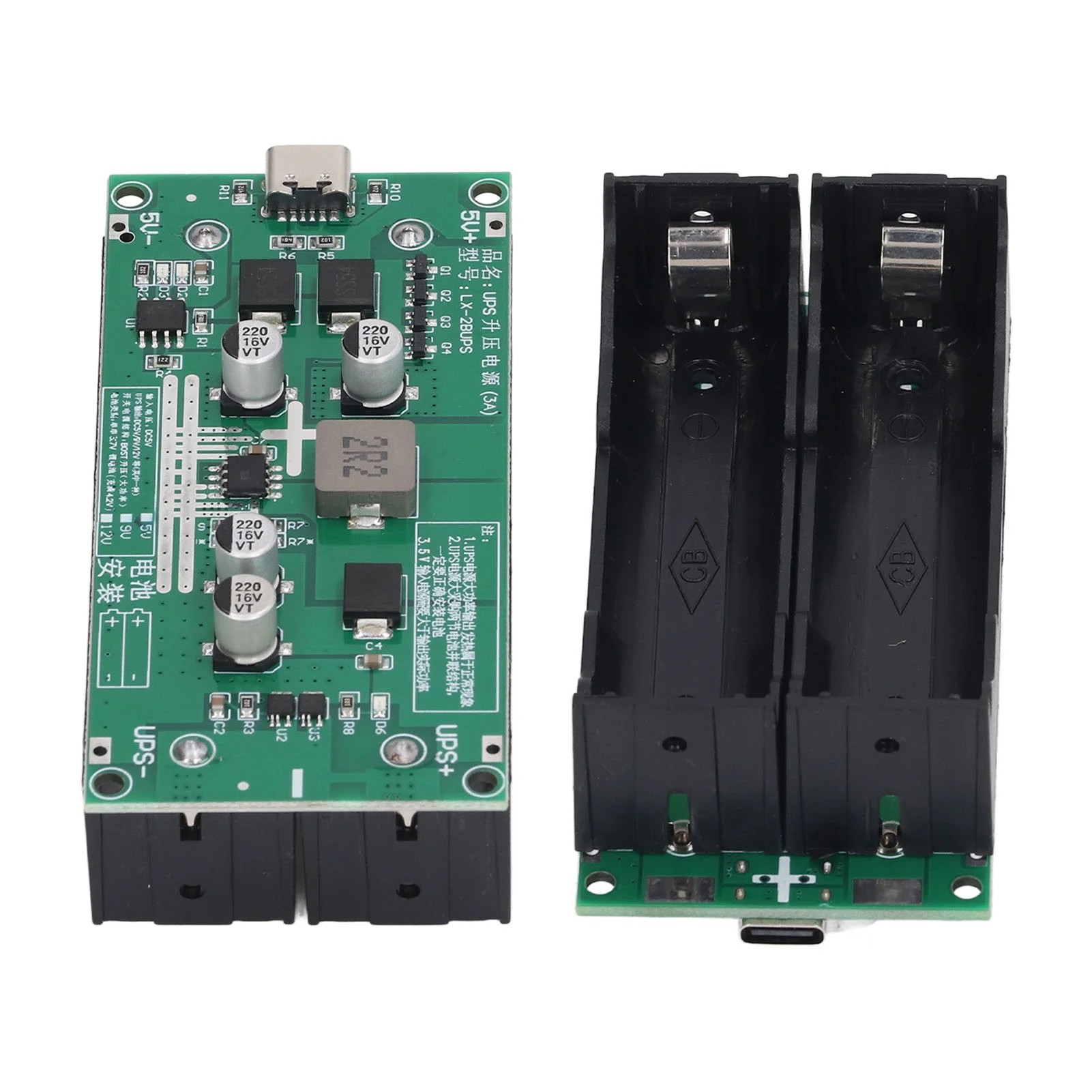 - MODULE INTERFACE: The module is equipped with two battery sockets, a universal Micro USB charging port, and direct DC5V input to the lithium battery