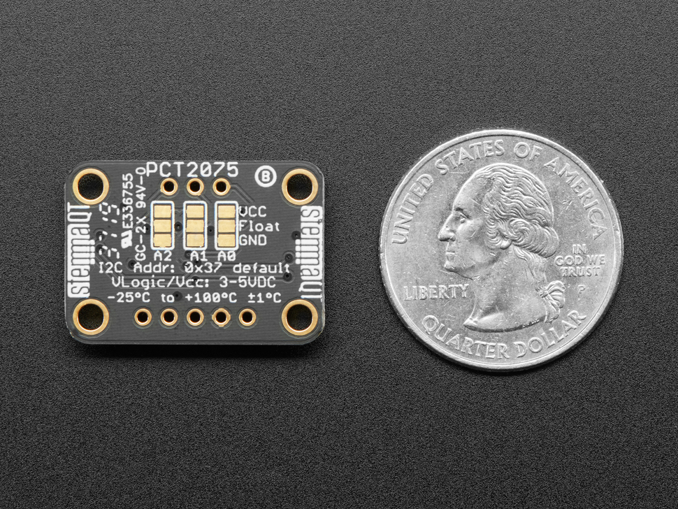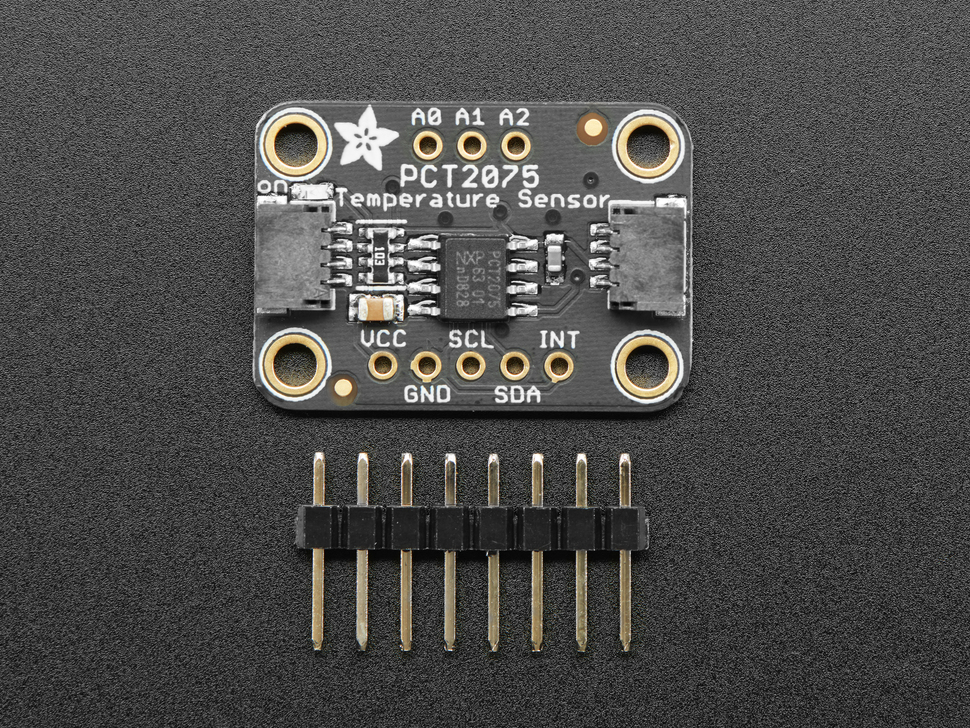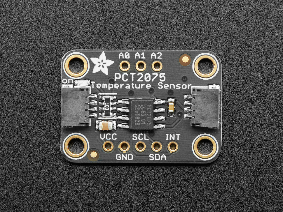 The Adafruit PCT2075 Temperature Sensor is a ‘code compatible’ drop-in replacement for a very common I2C temperature sensor, the LM75.