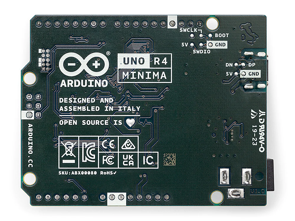 - SWD connector: Debugging is a critical aspect of any project. Simply connect an external debugger to the UNO R4 Minima and effortlessly monitor the inner workings of your system. Stay in control and gain valuable insights.