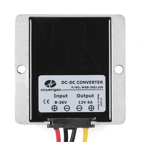 This is an industrial grade DC Buck-Boost converter that inputs 8V to 36V and outputs 12V up to 6A or 72W.