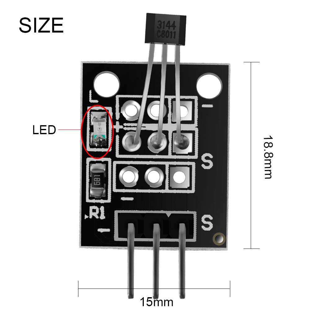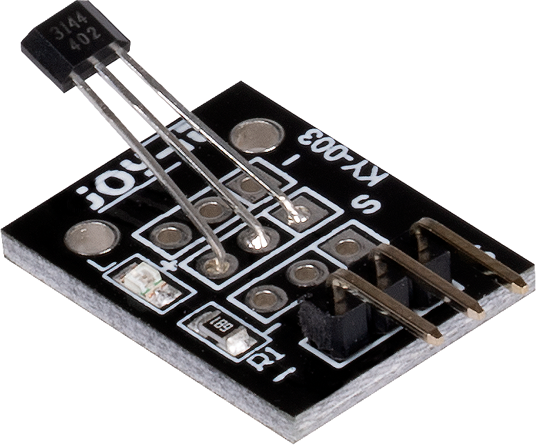 The KY-003 Hall Magnetic Sensor module is a switch that reacts to the presence of a magnetic field, turning itself on or off. Compatible with popular microcontrolers like Arduino, Raspberry Pi and ESP32.