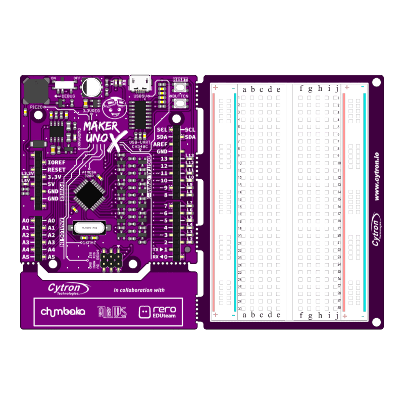 Maker UNO X is our take on the most Classroom-friendly Arduino-compatible board. It is the culmination of years of teaching Arduino & STEM by our education partners – Chumbaka, ARUS, and rero EDUteam. We designed Maker UNO X to be easy to teach in the classroom and beginners friendly for any students.