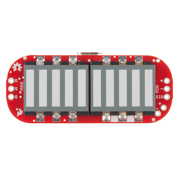 The MyoWare LED Shield is designed to pair with the MyoWare Muscle Sensor. The blue 10-segment bar graph shows the magnitude of the measured signal. The more muscle activation measured, the higher up the board the lit LEDs will go. With this shield you will be provided with a visual representation of the signals provided by the MyoWare Muscle Sensor and an on-board lithium polymer (LiPo) power source.