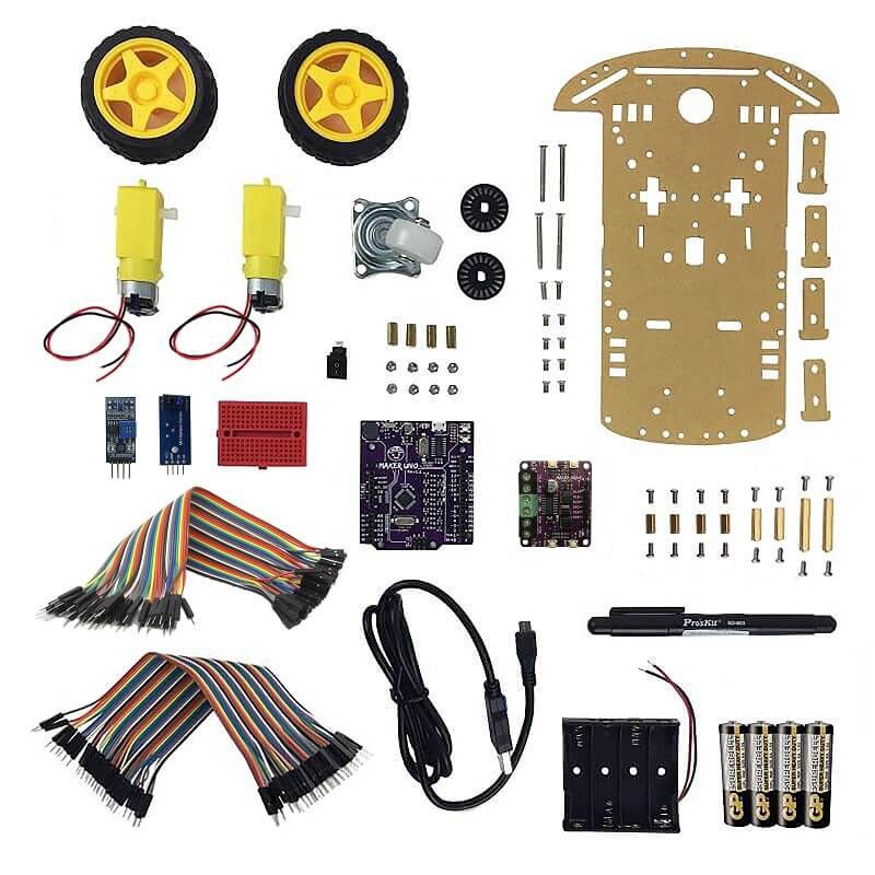Everyone loves mobile robots 🙂 This is a mobile robot kit based on Maker UNO(Arduino UNO compatible). You can learn electronics, sensors, microcontrollers, and coding all at once, not to forget to have fun too!