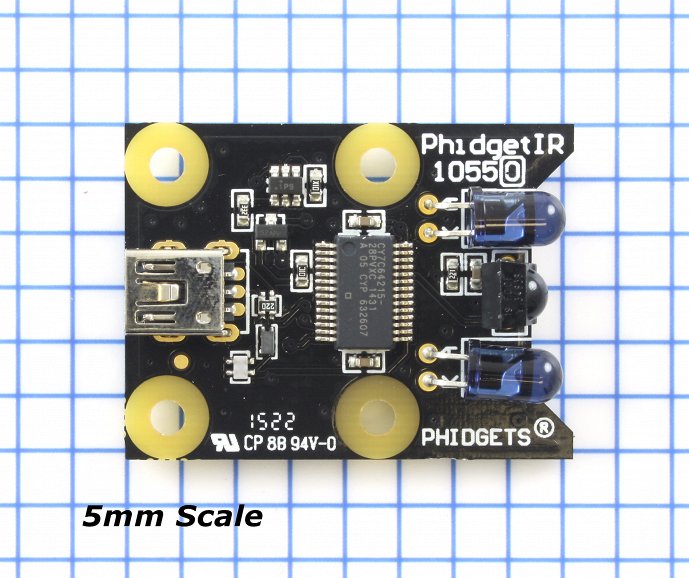 The PhidgetIR can send and receive data encoded in various fashions as pulses of infrared light. The various encoding that the PhidgetIR supports are grouped under the general term ‘Consumer IR’ or CIR. CIR is generally used to control consumer products such as TVs, Blu-ray players, or speaker systems. with a wireless remote control, but in general can be used for any application that needs to transmit low speed data wirelessly.