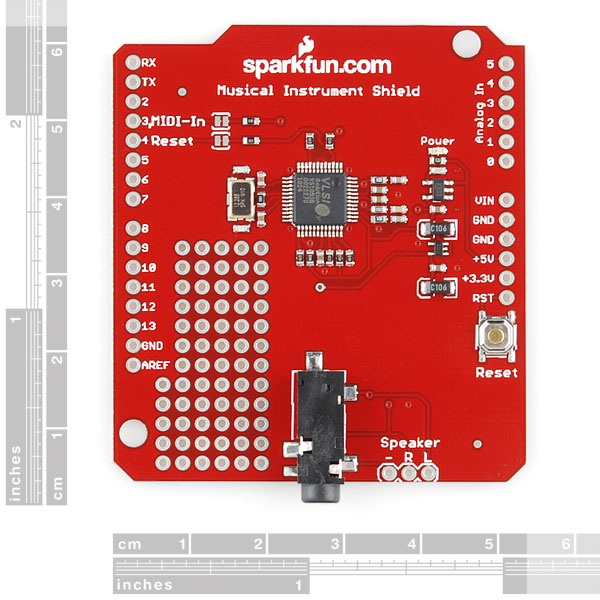 The SparkFun Musical Instrument Shield is an easy way to add great sounding MIDI sound to your next Arduino project.