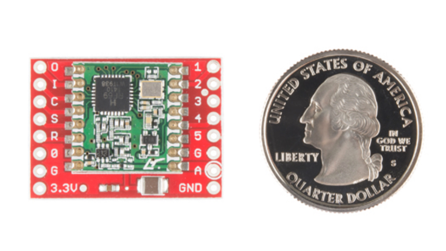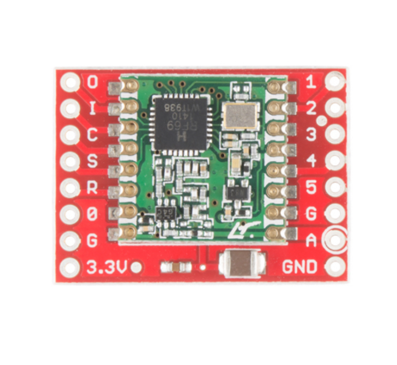 This is the SparkFun RFM69 Breakout, a small piece of tech that breaks out all the pins available on the RFM69HCW module as well as making the transceiver easy to use.