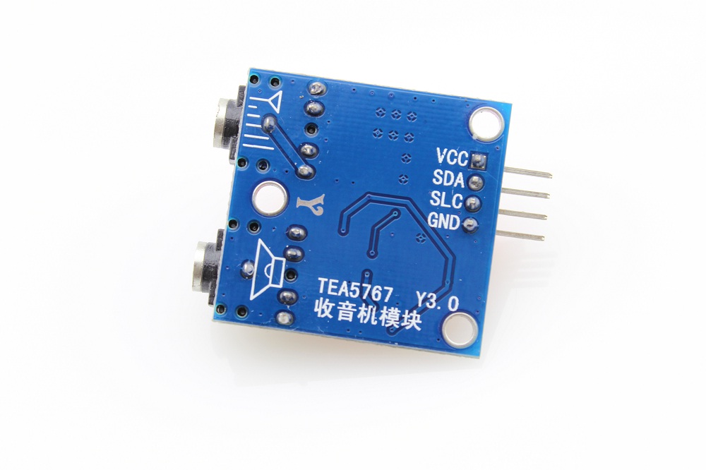 This is an I2C controlled stereo FM radio module that can be used with Arduino or other microcontroller boards. You can build you own stereo FM radio with this product. The module contains 1/8″ (3.5 mm) headset / speaker jack and external antenna connection. It uses TEA5767 chip as Tuner circuit and TDA1308 chip as audio amplifier.