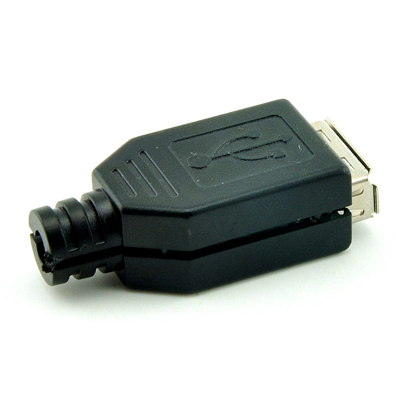 USB Type A Female 4 Pin Plug Socket Connector With Black Plastic Cover