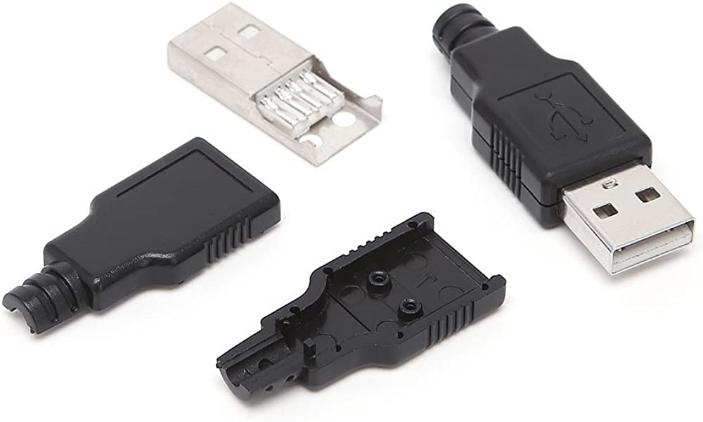 USB Type A Male 4 Pin Plug Socket Connector With Black Plastic Cover