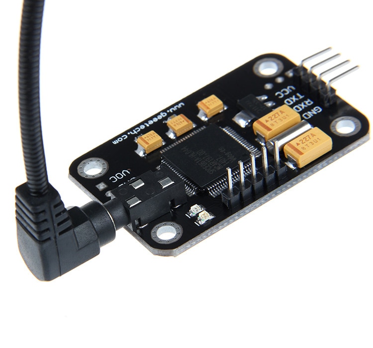 This Geeetech Voice Recognition Module could recognize your voice. It receives configuration commands or responds through serial port interface. With this module, we can control cars or other electrical devices by voice.