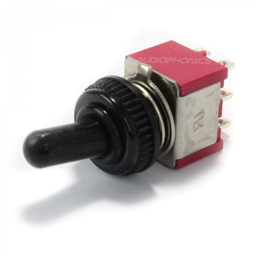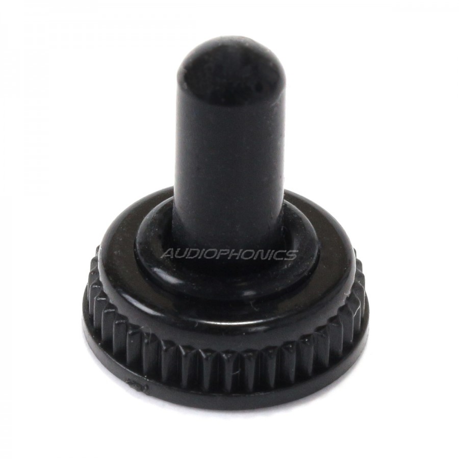 This black plastic and rubber cap can be used to cover toggle switches to change their appearance. In addition, this cap has a seal at its base, allowing it to be both dust and waterproof, to protect your switch.
