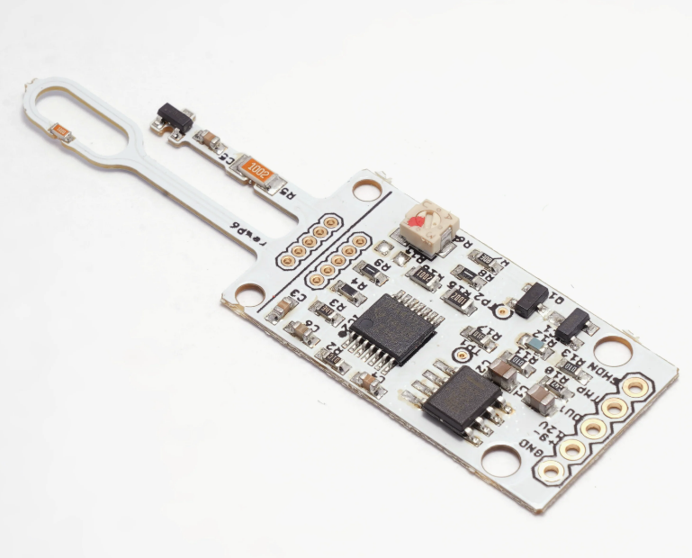 The Rev. P6 wind sensor is the latest revision of our wind sensor, revised to increase stability and accuracy. We also added a high precision potentiometer to allow easier calibration. All boards are calibrated in the shop, so the potentiometer shouldn’t need to be changed by the user, although it’s there to experiment with if you so desire.